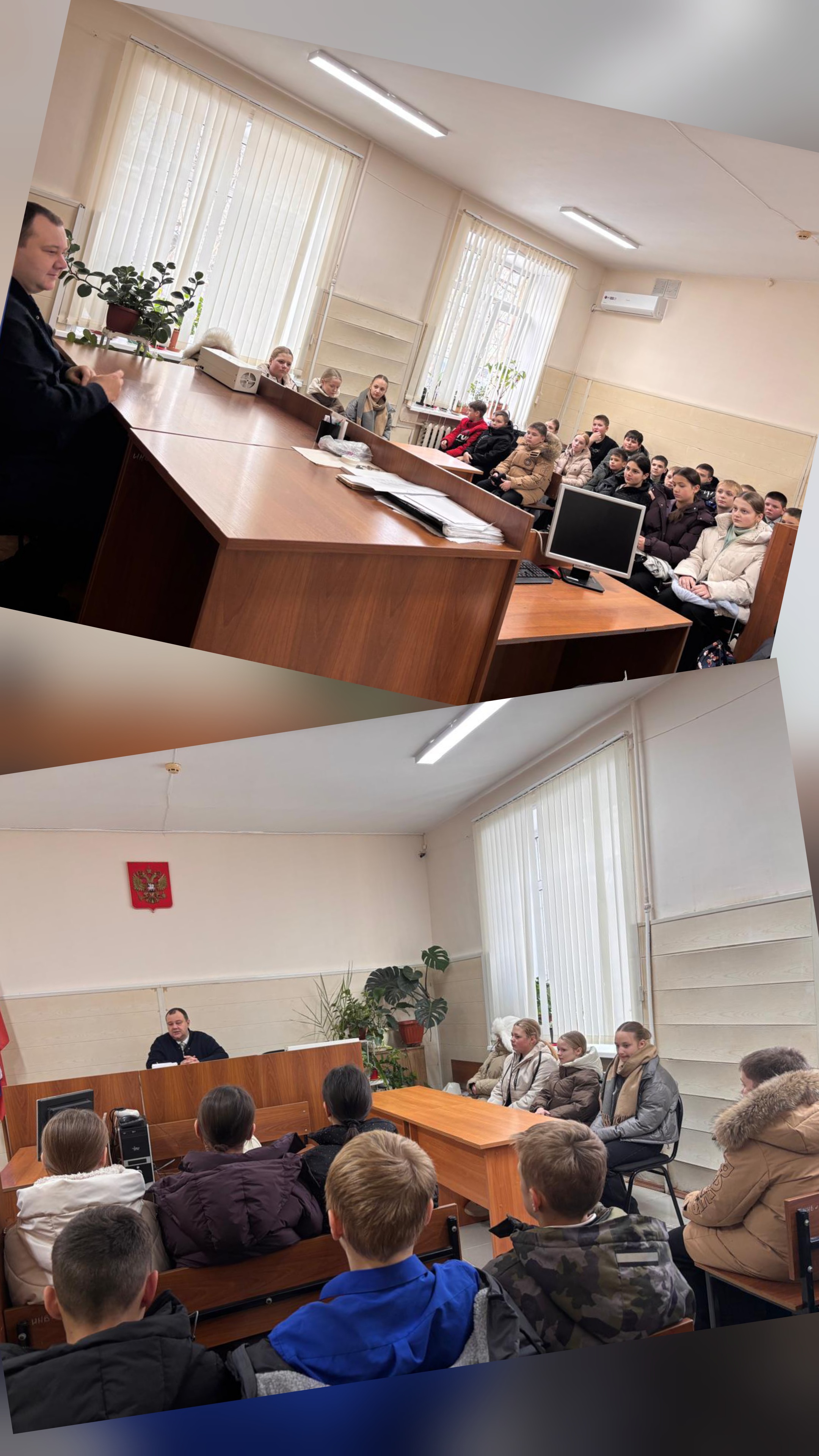 Экскурсия школьников МОБУ СОШ № 2 Пожарского муниципального округа 25.11.2025 ученики 6 класса МОБУ СОШ № 2 Пожарского муниципального округа посетили Пожарский районный суд Приморского края. Экскурсия началась с холла суда, где судебный пристав познакомил ребят с постом охраны. Представитель суда - федеральный судья Шевцов Андрей Сергеевич по традиции провел экскурсию по зданию суда, ответил на интересующие ребят вопросы. Беседа проходила в зале судебного заседания, в ходе которой были затронуты такие темы, как история судебной системы, специфика работы в суде, требования к кандидатам в судьи. Школьники узнали о категориях преступлений, меры наказаний, приведены статистические данные по преступлениям, совершаемым несовершеннолетними, их ответственность. ![]() |